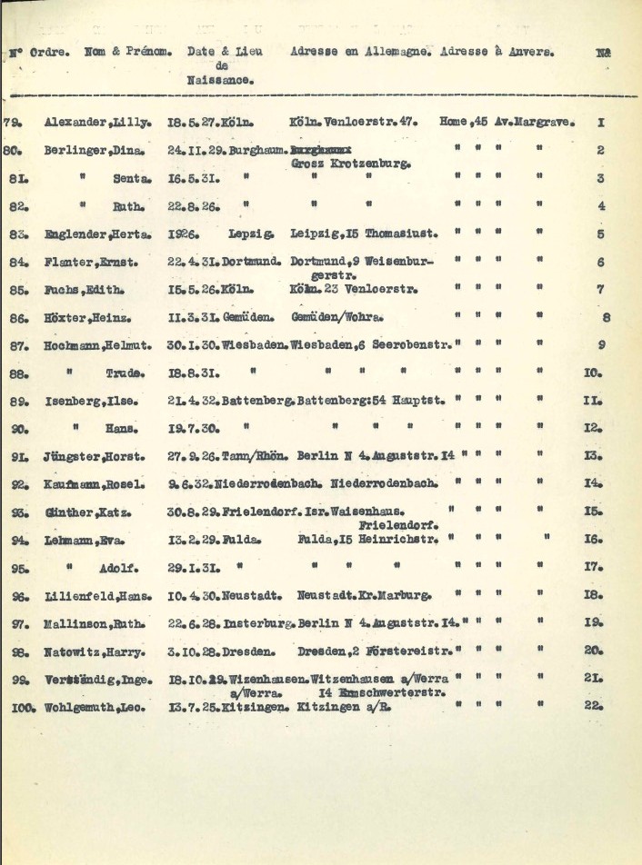 List of names of the Kindertransport from Vienna to Antwerp, 1939
