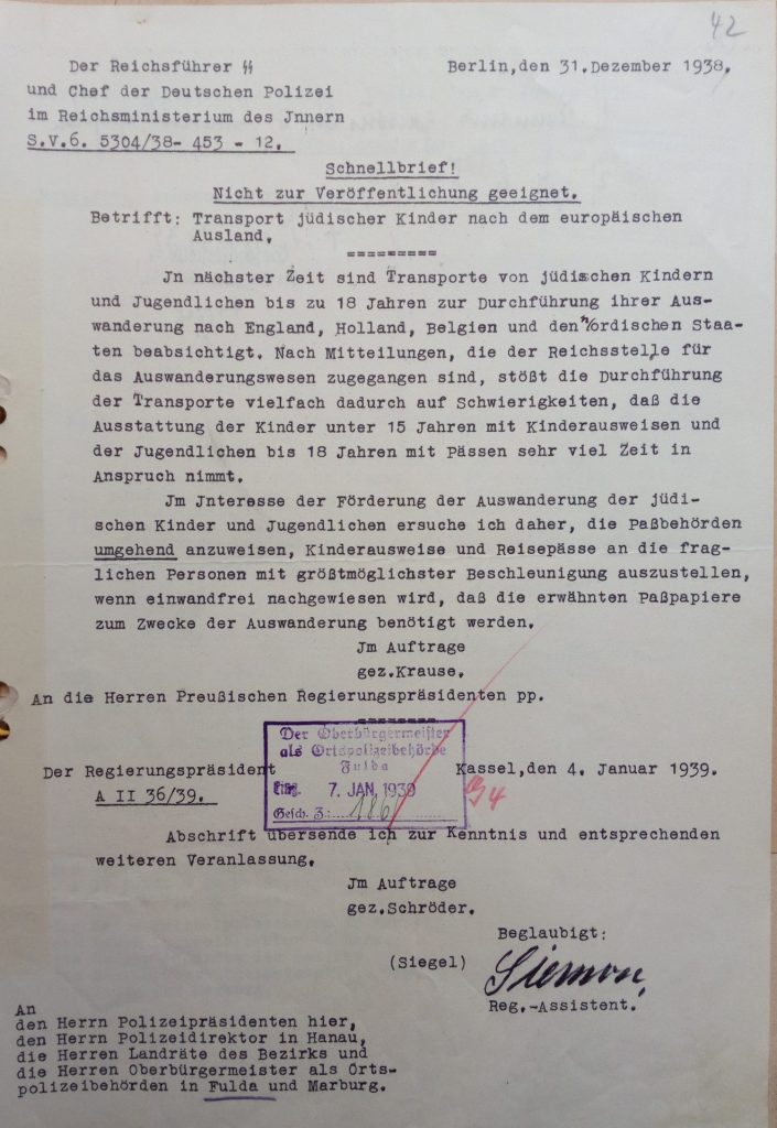 Transport jüdischer Kinder nach dem europäischen Ausland – beschleunigte Passausstellung, 1938