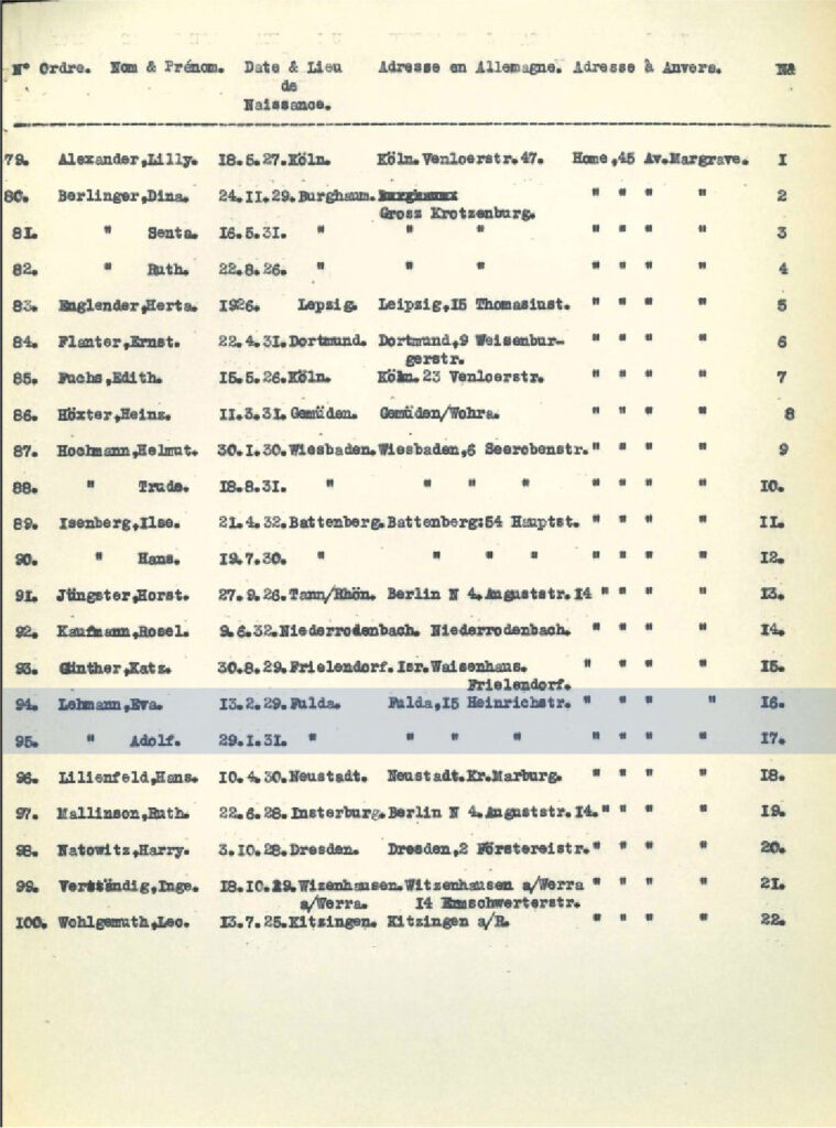 Namensliste des Kindertransports von Wien nach Antwerpen, 1939